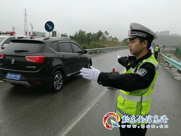交警提醒:雨天行車易打滑引發(fā)道路交通事故,廣大駕駛員朋友在雨天行車時需控制車速保持安全行車距離。(楊丹江)
