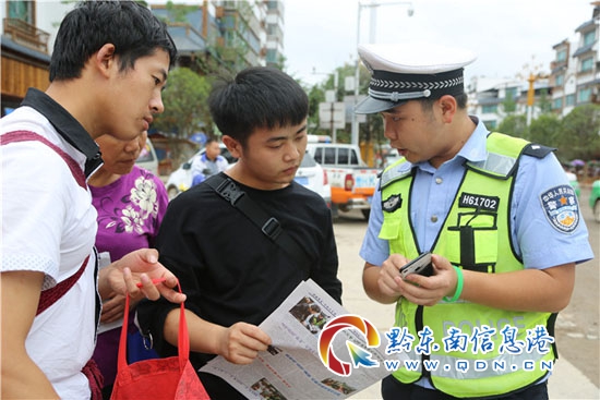 當天,恰是施秉縣城關鎮的趕集日,街上過往群眾絡繹不絕。施秉交警首先在人流密集的下步行街廣場中央利用大型廣告車作為背景播放交通事故案例視頻,過往趕集群眾無不被視頻里一起起慘痛的事故震撼,視頻里一幅幅引人深思的畫面,讓在場群眾在感嘆生命脆弱的同時,明白事故就在一瞬間,生命也只有一次,容不得開半點玩笑,并警醒著每一位群眾自覺遵守交通法規,遠離交通事故的重要性和緊迫性。隨即,民警利用交警巡邏車將抽取轄區典型交通事故案例自制的宣傳展板依車身一字排開,展板上血淋淋的圖片吸引群眾紛紛駐足觀看,民警深情并茂地向群眾講解、分析以及事故教訓,結合近期正處于暴雨天氣多發時期,以夏季汛期惡劣天氣交通安全知識為主線展開宣傳講解了出行應注意的安全事項;叮囑他們不坐農用車和超載客車、不酒后駕車、不使用“黑車”從事客運等與老百姓日常生活息息相關的安全知識。一時間,交警的宣傳臺前人潮涌動,成了宣傳活動現場的亮點。隨后,民警和交通安全自愿者一起走上街頭、集市上向老百姓們發放《漂城駕友》《汛期惡劣天氣出行注意事項》等交通安全資料。每發放一份資料,民警都會就目前城區正在進行路面施工,全城無斑馬線等標志標線實際情況,告誡群眾不要隨意亂橫穿馬路,一定要養成遵守交通法規,摒棄交通陋習,文明出行的習慣。并結合夏季汛期惡劣天氣特點,分析出行易引發道路交通事故的原因,向廣大群眾講解如何安全駕駛、乘車、走路,以及遇到突發緊急情況如何處理,確保出行安全等問題。