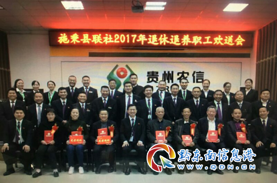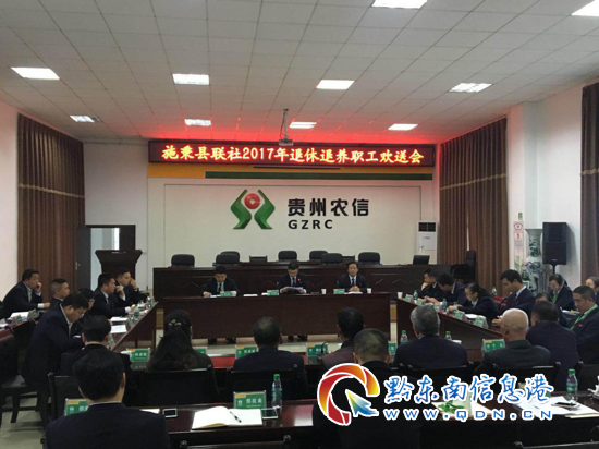 本網訊 10月25日下午,在重陽節到來之際,施秉聯社在縣聯社六樓會議室召開2017年退休退養職工歡送會,會議由縣聯社黨委委員、主任文爾達主持,聯社黨委委員、副主任唐仕和、工會主席楊家慶,各部室和各網點負責人、職工代表共計38人參加座談。