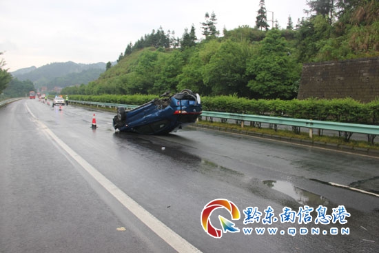 據了解吳姓駕駛員駕駛貴D籍小型轎車沿滬昆高速公路行駛由玉屏前往凱里,當行駛至距臺烈收費站兩公里處時,由于天氣下雨路面濕滑,駕駛車輛速度較快的情況下,車輛突然打滑失去方向,駕駛員操作不當導致車輛左后輪軸承斷裂輪胎脫落發生車輛側翻后呈“三腳朝天”的道路交通事故,所幸當時吳姓駕駛員規范使用安全帶未造成人身受傷。