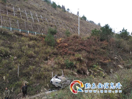 本網訊 12月17日,貴州省黔東南州公安局交警支隊高速四大隊值班民警接到報警稱在滬昆高速公路三穗往凱里方向貴州省臺江縣境內小地名南約溝處發生道路交通事故,沒有人員受傷請出警。接警后民警龔武訓、龍家錦立即趕往事故現場,當民警到達事故現場后發現貴H籍事故車輛沖出高速公路掉落于30米以下的山坡下,車輛車身嚴重損壞,所幸的是駕駛員規范使用安全帶沒有被甩出車外只是造成了皮外傷。