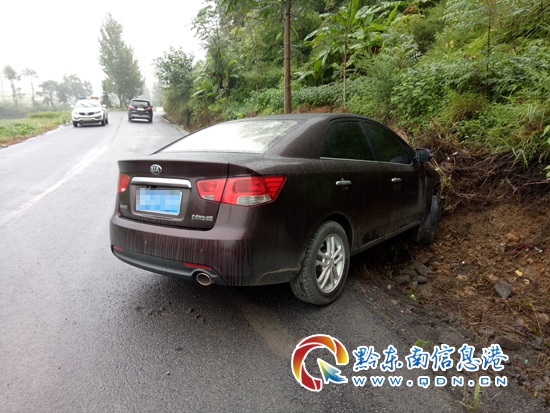 2017年9月6日上午,天柱縣交警大隊宣傳民警帶領同事駕駛警車下鄉搞宣傳活動,9點30分左右行經天柱縣社學街道紅衛村路段時,發現一輛小型汽車插進公路邊坡里,兩前輪已經沖出路面,兩后輪還在公路邊上,車輛旁邊孤零零的站著一個無助的女士。民警見狀,立即下車詢問情況,據女士講,該車剛剛發生事故兩分鐘,她駕駛的車輛,本人安然無恙,車上無其他人員,這時過往車輛較多,而事故現場前后都沒有設置警示牌,恰好又是在彎道上,視距不好,民警感覺非常危險,怕發生二次事故,問清楚事故車輛沒有警示牌后,馬上把警車上的三腳警示牌架放在事故車來車方向的50米遠處進行警示,民警及時打電話叫來救援拖車救援,緊接著對交通進行疏導。