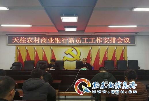 本網訊 12月13日,天柱農村商業銀行2017年新員工就職座談會在總行五樓會議室召開。會議由人力資源部總經理楊勝忠主持,董事長楊仁君出席會議并發表講話。