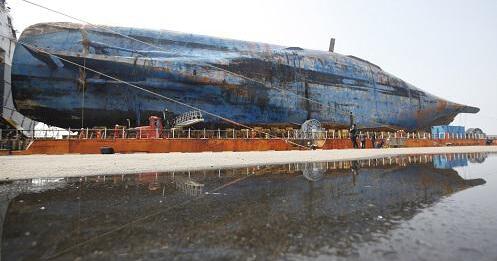 韓國世越號沉船停靠在木浦新港。新華社記者姚琪琳攝