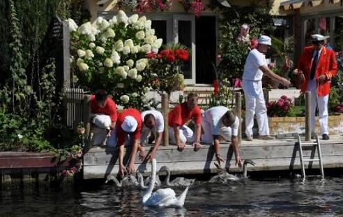 據外媒報道,在英國,天鵝屬于王室財產。每年都會有專人清點天鵝的數目,這項傳統被稱為“數天鵝”(Swan Upping)。據說,這項傳統已經延續了800年。