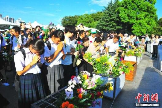 “和平紀念儀式”在日本廣島市的和平紀念公園舉行,紀念該市遭遇原子彈爆炸72周年( 中新社記者 呂少威 攝)