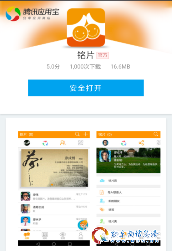 銘片,以傳統實體紙質名片為形式,在用戶自行采集個人信息數據情況下,調動使用云端的海量銘片模版,自動生成電子銘片,并在移動端呈現逼真名片效果,在用戶需要時可導出打印紙質名片或到官網下載銘片模版源文件制作精美紙質名片,同時,結合時代科技發展成果,增加了即時通訊功能和商務應用功能。