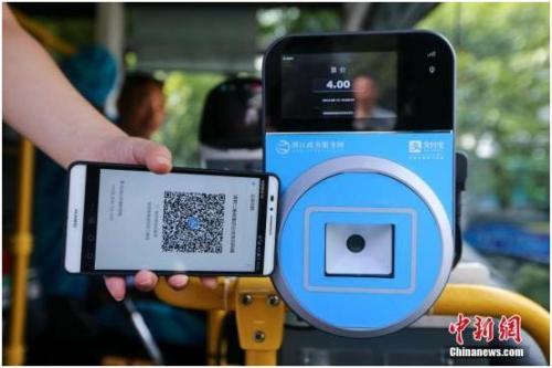 2016年8月16日,杭州民眾搭公交沒帶公交卡和零錢,可刷支付寶乘坐。中新社發 許康平 攝