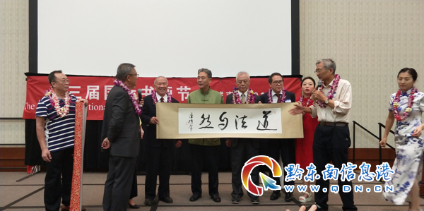 中國美術(shù)界著名評(píng)論家陳傳席向夏威夷州政府贈(zèng)送書法作品《道法自然》