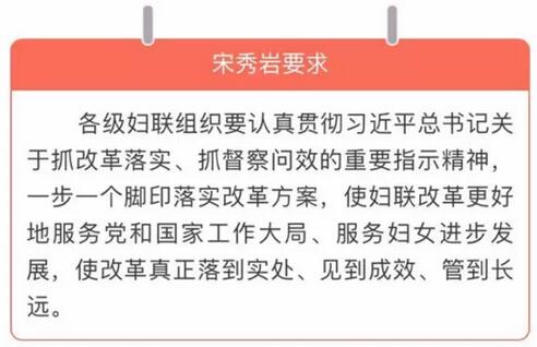 為貫徹落實(shí)習(xí)近平總書(shū)記在中央全面深化改革領(lǐng)導(dǎo)小組會(huì)議上提出的各級(jí)主要負(fù)責(zé)同志要自覺(jué)從全局高度謀劃推進(jìn)改革,做到實(shí)事求是、求真務(wù)實(shí),善始善終、善作善成,把準(zhǔn)方向、敢于擔(dān)當(dāng),親力親為、抓實(shí)工作以及要把抓改革落實(shí)擺到重要位置,投入更多精力抓督察問(wèn)效,提高發(fā)現(xiàn)問(wèn)題、解決問(wèn)題的實(shí)效等重要指示精神,全國(guó)婦聯(lián)黨組決定,5-6月份由全國(guó)婦聯(lián)書(shū)記處同志帶隊(duì),組成6個(gè)調(diào)研督導(dǎo)組,分赴各省區(qū)市集中開(kāi)展婦聯(lián)改革調(diào)研督導(dǎo)。5月10日—13日,宋秀巖率隊(duì)深入貴州省貴陽(yáng)市、黔東南州、黔南州,對(duì)貴州省婦聯(lián)改革特別是全國(guó)婦聯(lián)部署的重點(diǎn)改革任務(wù)在貴州基層落實(shí)情況進(jìn)行調(diào)研督導(dǎo),同時(shí)實(shí)地考察了貴州省各級(jí)婦聯(lián)組織大力實(shí)施“巾幗脫貧行動(dòng)”、幫助貧困婦女脫貧致富情況。