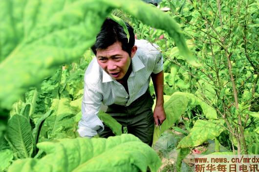 余啟良在烤煙種植基地勞作。記者 田朝暉 攝