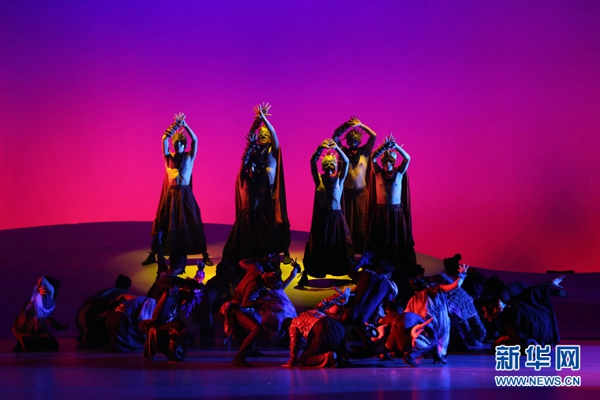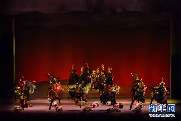 11月13日晚,大型彝族神話舞劇《支嘎阿魯》在貴陽上演。新華網 盧志佳 攝