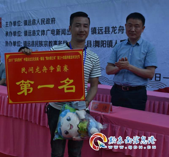 本網訊 (記者 田應龍 攝影報道) 5月28日,“多彩貴州”中國歷史文化名城·鎮遠㵲水銀江杯”第三十屆首屆傳統龍舟文化節暨首屆民間龍舟爭霸賽和高校龍舟邀請賽在舞陽河河段隆重舉行。經過精彩角逐,華北代表隊、廣州航海學院分別獲得民間爭龍舟霸賽和高校龍舟邀請賽的冠軍。