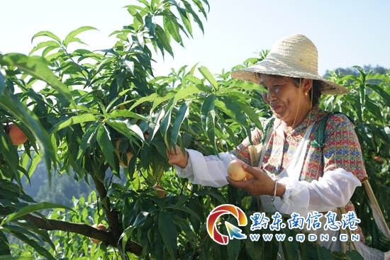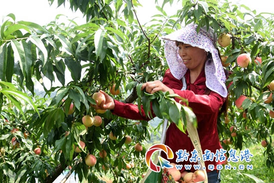 據基地負責人吳開明介紹,該桃園于2011年建立,位于鎮遠金堡鎮金凱村貴所組大屋基嶺深山,種植面積達1200余畝,通過“公司+合作社+農戶”經營模式,長期帶動附近30余戶群眾就近就業,其中貧困戶11戶。