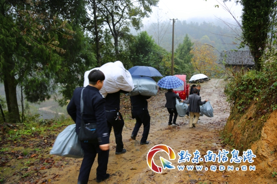 鎮遠公安、民政、大地鄉政府為譚氏一家送去棉衣、棉被