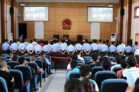 早晨8時左右,距離開庭還有一個多小時,岑鞏縣人民法院門口就聚集了不少旁聽群眾。8時30分,旁聽人員陸續進入安檢大廳,為保證庭審秩序,該院采取了嚴格的安保措施,旁聽人員必須持有效證件進行登記,并將隨身物品交由該院安保人員保管后領取旁聽證方能進入法庭。9時30分,隨著審判長法槌落下,被告人田某某等17人在民警的押送下進入法庭。