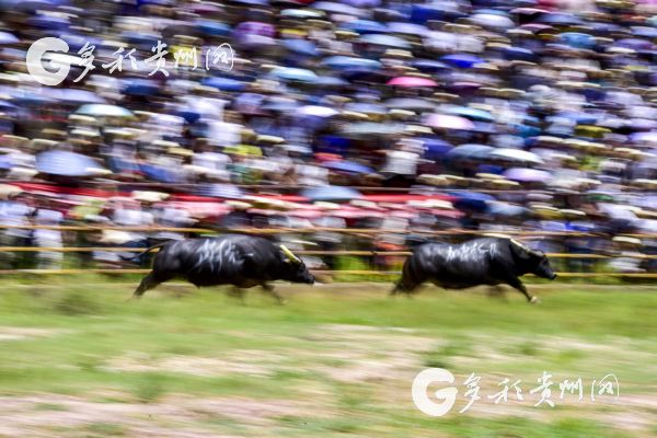 2018年8月19日,在貴州省從江縣下江鎮(zhèn)歸江斗牛塘,人們?cè)诶D_將斗牛分開(kāi)(吳德軍 攝)