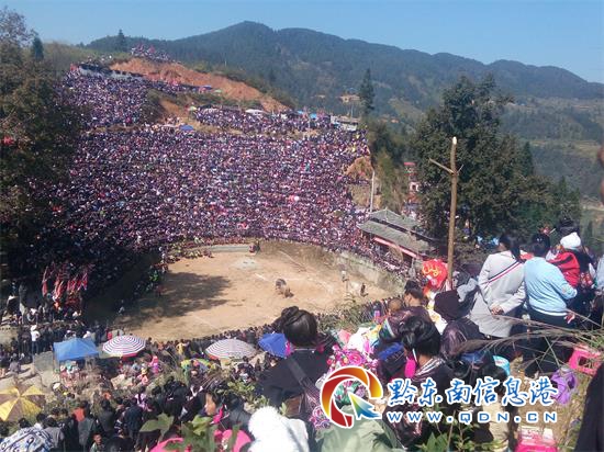 當(dāng)日,各方民族同胞身著民族盛裝,齊聚牛堂,人頭涌動(dòng),鑼鼓喧天,蘆笙陣陣,煙炮沖天,22對(duì)牛王同場(chǎng)競(jìng)技,慘烈撕殺,歡呼陣陣,贊聲嘖嘖;現(xiàn)場(chǎng)氛圍,熱鬧非凡,無比震撼。