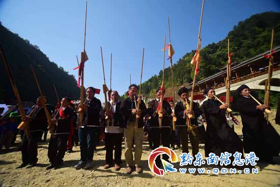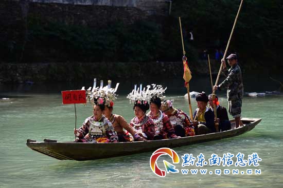 本網訊 4月18日是農歷三月初三,在丹寨縣排調鎮岔河村,來自周邊村寨的苗族同胞們身著盛裝共聚一堂,以河道漂流、跳蘆笙舞、唱山歌、唱誦苗族賈里等方式,歡度傳統節日“三月三”。(楊武魁 攝影報道)
