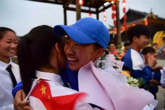 另一邊,在丹寨萬達(dá)小鎮(zhèn)尤公廣場,丹寨人民早早就在這里等待著他們的到來。護(hù)旗手們一下車,他們的家人朋友們一起迎接他們回家,為他們送上鮮花和掌聲。