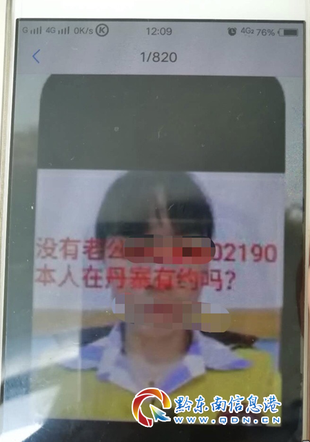 7月2日,丹寨縣居民王某會(女)的一張本人近照,被他人編輯有“沒有老公15286XXXXXX(王某會電話)本人在丹寨有約嗎?”的文字后,發布在騰訊QQ群里。照片傳播出去后,王某會不斷接到陌生人的騷擾電話,給受害人王某會的工作、生活帶來不便,精神上也造成了極大傷害。事發后,受害人立刻報警,請公安機關調查處理。