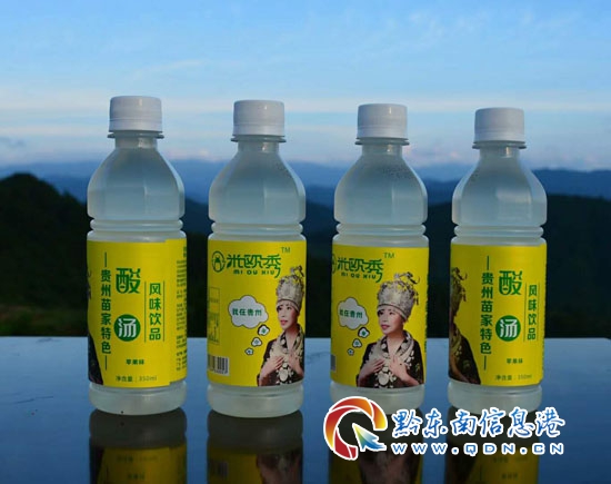 這家命名為貴州酸啦啦酸湯科技有限公司的酸湯飲料廠位于丹寨縣金鐘開(kāi)發(fā)區(qū)內(nèi),交通便利。據(jù)了解,在該公司掛牌之前,公司的負(fù)責(zé)人與凱里學(xué)院聯(lián)手展開(kāi)技術(shù)攻關(guān),歷時(shí)三年研發(fā)出了國(guó)內(nèi)第一款酸湯飲料,使用名稱(chēng)為“米歐秀”(苗族米酸湯的意思)。目前,飲料已經(jīng)上市,它保持了黔東南苗家米酸湯的原味,又有所提煉和提升,酸中帶甜,酸甜結(jié)合,口感較好,具有開(kāi)胃、通腸胃、解酒等功效。