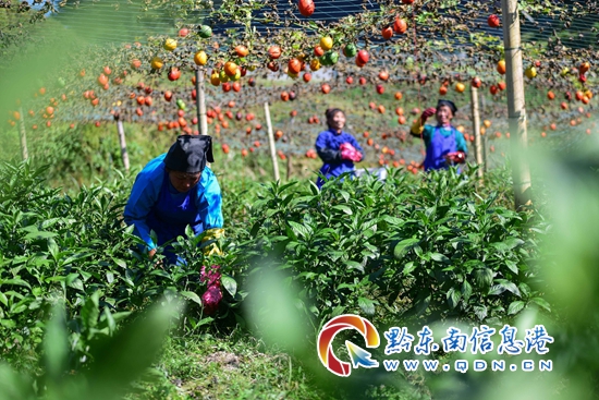 近年來,丹寨縣著力調整農村產業結構,引進吊瓜、藍靛等效益較好的種植產業,并將牽藤掛果的吊瓜和喜陰扎根的藍靛進行“上下”套種,在充分利用土地的同時,促進農戶增產增收。(楊武魁 攝)
