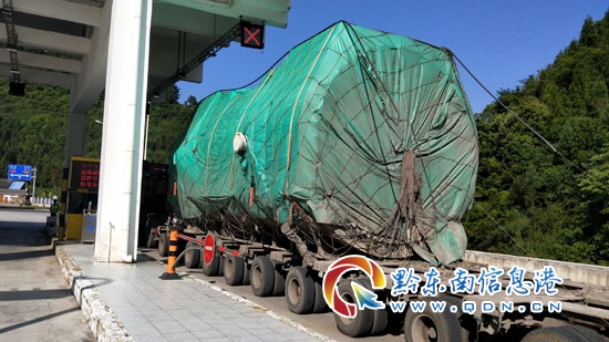 接警后,黔東南州交警支隊高速二大隊民警立即前往支援,在支援民警到達紙房收費站后發現,一輛車牌為黑NA****的重型牽引車牽引一輛拖掛車停在紙房收費站出口的超寬車道上,全車共用13軸90條輪胎,掛車上拉載了一個圓形的貨物。后經詢問該車駕駛員崔某得知,該貨物為發電機,是不可以撤卸的,是從哈爾濱運往貴州貞豐縣,已經在路上行駛了十多天。在詢問該貨物有多重時,該車駕駛員一直支支吾吾不肯回答,說是公司要求運送的,他什么都不知道,現場執法民警立即調取收費站過車信息,發現該車總重為244.2噸,而高速公路對于貨運車輛的最高限重視49噸,該車完全超過荷載標準,而在執法民警的再三要求下,該車駕駛員拿出了貨運清單,貨運清單上清清楚楚的表明貨物重量為195噸,且沒有辦理超限超載運輸許可證。