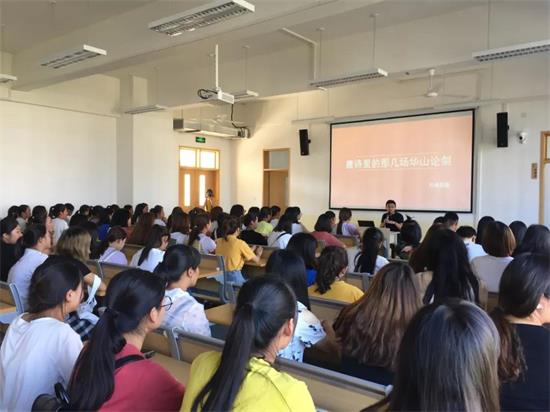 眾所周知,六神不僅讀金庸,還讀唐詩。六神給學生們講解的,就是《唐詩里的那幾場華山論劍》,李益PK王之渙的鸛雀樓之戰,王之渙PK王昌齡的旗亭之戰,宋之問PK沈佺期的彩樓之戰,六神對唐詩信手拈來,把詩人之間的PK講述得有聲有色。你說,看到這么有趣的PPT,遇到這么有料有才的老師,學生能不開心嗎?