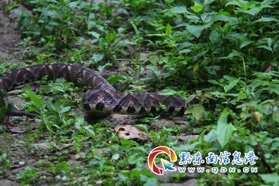 據了解,五步蛇,學名為尖吻蝮,有劇毒,主要棲息在海拔400——700米的常綠和落葉混交林中,屬于國家瀕危二級保護動物。(王芳焯)