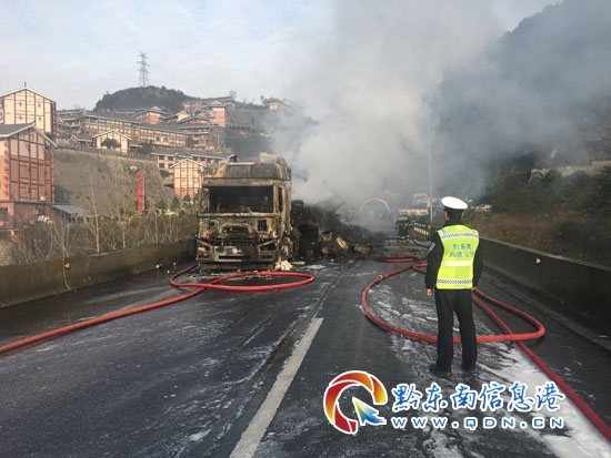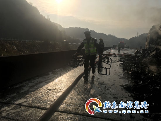 那么現場情況到底是怎樣?事后是如何發展的?由參與處置這起大貨車自燃事件的黔東南州交警支隊高速一大隊民警來為您解答。