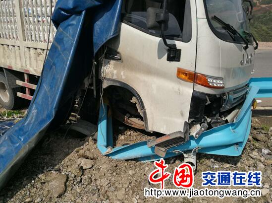 經現場勘查、詢問得知,該貨車由下司出發運貨前往爐山,行經事發地點時,對向車道駛來一輛小車準備調頭,由于貨車裝滿了貨物,導致避讓不及,隨后撞上了路邊的防護欄。