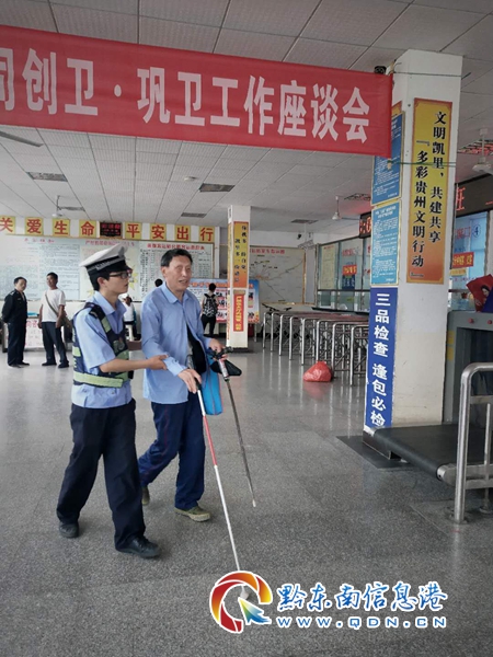 這名老人今年75歲,是一名盲人,家住凱里市凱棠鄉,需要買票坐車回凱棠。考慮到老人眼睛看不見,潘松平馬上攙扶老人買票進站乘車,將老人送到車上安排他坐好,并囑咐駕駛員一路上照顧好老人。潘松平做完這一切后才安心的返回執勤崗點,繼續投入到交通疏導工作中。