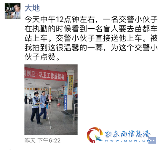 潘松平的這一舉動剛好被一名趕車的網友拍了下來,這名網友也轉發給了貴陽晚報的記者吳如雄,希望媒體能多多報道這樣的正能量。(楊曉涓 陳世波)