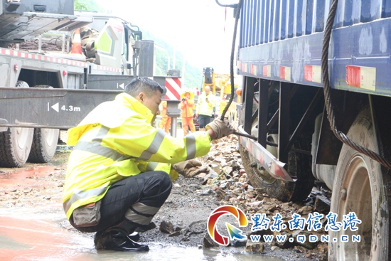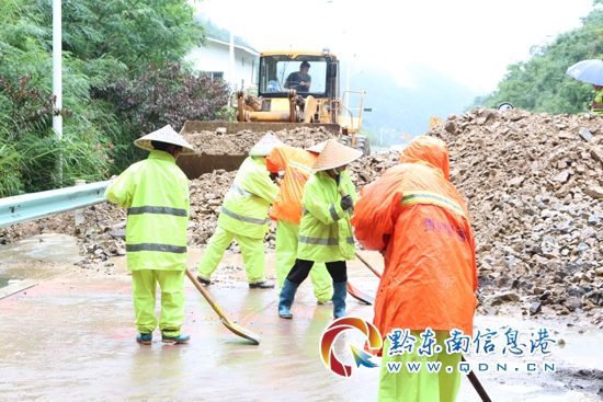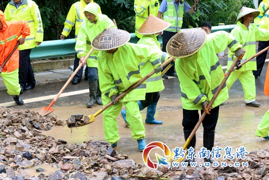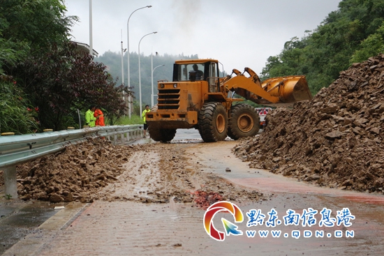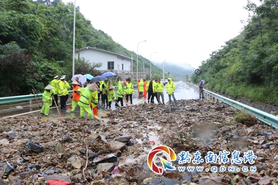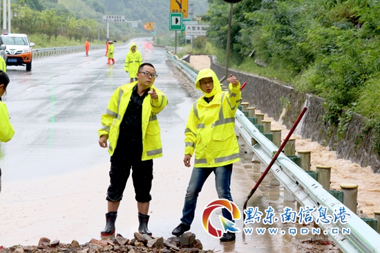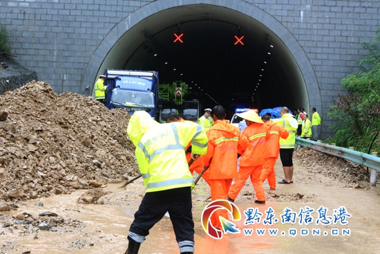 22日凌晨5時左右,三黎高速錦屏往天柱方向高釀隧道出口處,水毀泥石流大面積沖下高速公路,造成交通中斷,貴州高速集團凱里營運管理中心轄區(qū)橋隧站、應(yīng)急保暢中隊發(fā)現(xiàn)險情后,迅速組織人員趕赴現(xiàn)場實施搶險,并及時對水毀點路段進行渠化,同時立即啟動防汛應(yīng)急預(yù)案,迅速將水毀現(xiàn)場情況逐級上報。得知險情發(fā)生后,凱里營運管理中心領(lǐng)導(dǎo)班子紛紛趕赴一線指導(dǎo)抗洪搶險工作。