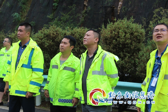 面對洪澇災(zāi)害,貴州交通人時刻走在抗洪搶險第一線,貴州高速集團營運管理中心黨委副書記、主任凌海峰一行,得知險情后,從幾百公里外的貴陽也及時趕到現(xiàn)場指導(dǎo)搶險工作,凌海峰主任憑借多年經(jīng)驗,帶領(lǐng)一行人先后深入凱里營運管理中心多個水毀點進行實地勘察,每到一處從水毀源頭到洪水去向凌海峰主任都堅持走在最前沿,積極帶領(lǐng)大家查明水毀原因,直到找準(zhǔn)治理方法一刻也沒有停歇過,凌海峰主任一行人的到來,為抗洪一線搶險的職工們鼓舞了士氣和干勁,為凱里營運管理中心抗洪搶險工作筑牢了后盾力量。