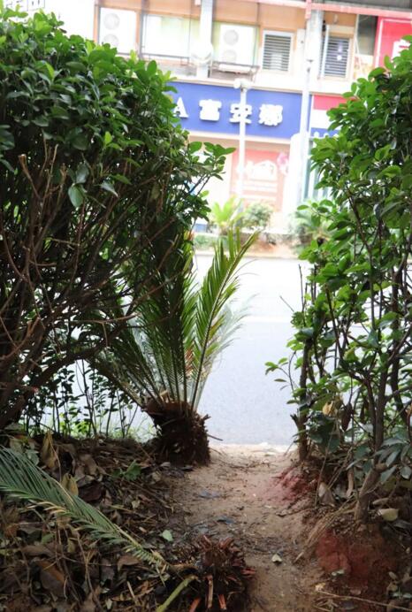 隨后,記者來(lái)到該路口看到:綠化帶草木稍微稀疏的地方已經(jīng)被踩出三條“泥巴小路”。在記者蹲守的短短半個(gè)小時(shí)的時(shí)間里,就有5人通過(guò)這些“小路”橫穿過(guò)去,對(duì)紅綠燈不管不顧,也根本不理會(huì)附近的斑馬線。橫穿小路的市民有的表示“不知道前面有斑馬線,看到有路就走了”,有的市民則認(rèn)為“斑馬線太遠(yuǎn)了,明明橫跨一個(gè)路口就可以過(guò)馬路,為什么要繞上一百多米。”