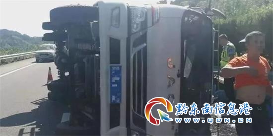 7月11日中午1點30分左右,黔東南州交警支隊高速一大隊值班室接到報警電話稱,在滬昆高速貴陽往凱里方向1698km+800m處,一輛滿載貨物的廂式貨車發生側翻,占據超車道。