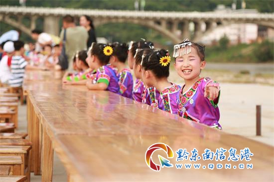 河沙壩水泥地上,早已擺好了苗家長桌宴,苗家土雞、臘肉、酸湯,遠遠就飄來一股誘人的香味。