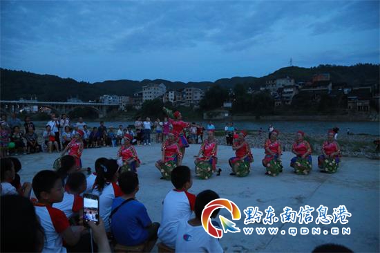 吃完長桌宴,點燃了篝火,兩地學生及“貴州媽媽”各自表演歌舞、苗族風情和苗族舞蹈,大家度過了一個難忘之夜。