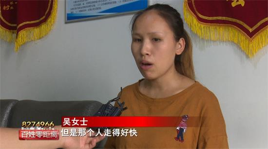 吳女士:“當(dāng)時(shí)我去抱我的孩子,把他抱起來后我就去找那個(gè)人,但是那人走得好快,我找不到她了。”