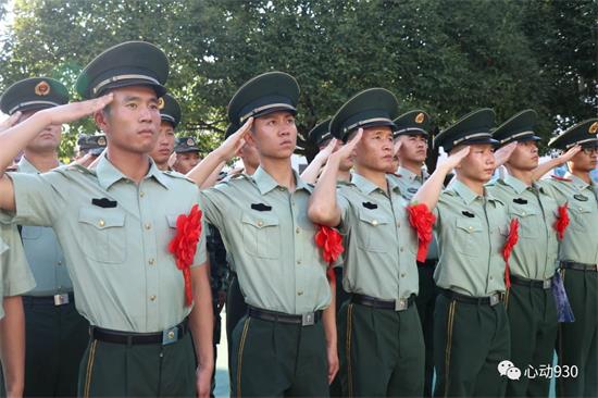 當天15時30分,儀式在莊嚴的《中華人民共和國國歌》聲中拉開帷幕。在宣布退伍命令后,退役士兵佩戴“光榮退伍”大紅花,昂首挺立,精神抖擻。