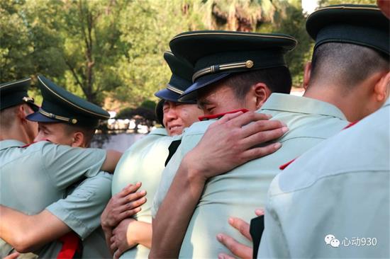 “敬禮!”一聲令下,所有退役士兵集體立正,莊嚴的敬禮告別,在與隊友擁抱的那一刻,退伍老兵一個個淚流滿面。
