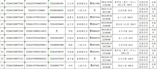 我局在日常道路交通管理工作中(2012年1月1日至2018年10月10日)對涉案扣留的各類駕駛證共53本,均已超過法定期限未按規定接受交通違法處理。根據《中華人民共和國道路交通安全法》第一百一十條規定:“執行職務的交通警察認為應當對道路交通違法行為人給予暫扣或者吊銷機動車駕駛證處罰的,可以先予扣留機動車駕駛證,并在二十四小時內將案件移交公安機關交通管理部門處理。道路交通違法行為人應當在十五日內到公安機關交通管理部門接受處理。無正當理由逾期未接受處理的,吊銷機動車駕駛證。”規定,請相關駕駛員自通告之日起十五日內,攜帶本人身份證及車輛有效憑證到凱里市公安交通管理局辦理相關手續,逾期不來辦理的,依法吊銷機動車駕駛證處理。