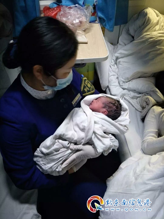 時間一分一秒過去,孕婦分娩的喊叫讓大家都揪心,在包廂外的旅客也都捏了一把汗。5點40分,伴隨一聲嬰兒響亮的啼哭,守護在外的人們心中一塊大石落下。但此時的于霞并沒有掉以輕心,完全顧不上臉上流淌的汗水,她接著小心翼翼把嬰兒嘴巴和鼻子里的羊水清理干凈,用消毒好的剪刀將臍帶剪斷并用消毒棉線扎緊。直到用早已備好的小單給嬰兒包上,她才松了一口氣。懷抱著嬰兒,于霞向產婦及其家人報了一聲平安,車廂里掌聲雷鳴。旅客感慨:“在火車上生孩子還是第一次遇見,幸好列車長經驗豐富,否則真不知道怎么辦”。
