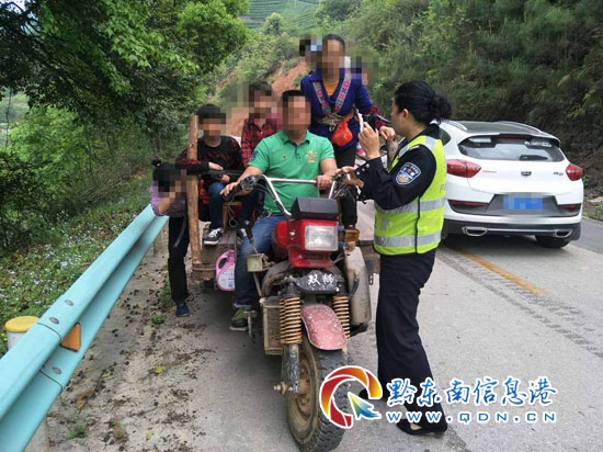 4月5日,黎平縣公安局交通警察大隊(duì)全警上路執(zhí)勤,在中潮鎮(zhèn)依法攔停了兩起三輪車非法改裝、非法載人的違法行為。其中一輛三輪車上包括駕駛員在內(nèi)男女老幼一共載了10個(gè)人,有坐著的有站著的,其中有兩名婦女背上還背有小孩,安全隱患巨大,一旦車輛發(fā)生翻車事故,后果不堪設(shè)想,看得民警都捏了把汗。