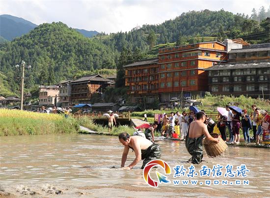 發源于苗嶺雷公山崇山峻嶺里的白水河,蜿蜒崎嶇地穿行在雷公山河谷的層巒疊嶂之間。這里的山與水,雋永清麗,意境深邃、寧靜淳樸,讓人陶醉。沈從文的湘西故事,似乎閃現著苗寨人的隱約身影。黃永玉的筆墨丹青,也許采擷了白水河谷青山綠水的自然靈氣。有這般人間仙境似的美景,西江苗寨自然早已成為全國聞名的旅游景點,每年來此旅游的游客絡繹不絕,各種旅游活動項目更是數不勝數,捉田魚享美食就是其中最為有趣的活動之一。