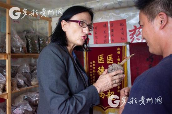 吃過飯,大部隊乘車來到了距肇興侗寨半小時車程的堂安侗寨。堂安侗寨規模比肇興小,海拔高上500米左右,在這里,可以俯瞰肇興,一丘丘綠油油的梯田綿延不絕。一下車,眼前的美景就讓中外大咖們挪不開眼,紛紛掏出相機記錄所見。接著,步行進入寨子,路邊一家侗家草藥鋪吸引了大家的目光。幾乎每個人都走進去逛了一遭,德國漢學家郝慕天饒有興趣地跟大夫侃了將近半個小時。“這個是靈芝嗎?”“這個我知道,是天麻。”“大夫,這個是什么呢?”直到工作人員提醒時間,才跟上了大部隊。