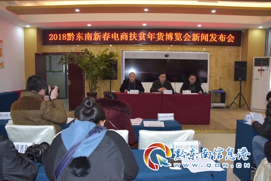 本網(wǎng)訊 (記者 楊懿)2018年1月30日,由黔東南州商務(wù)局、凱里市人民政府主辦,黔東南州有機(jī)農(nóng)產(chǎn)品供應(yīng)商聯(lián)合會(huì)承辦的2018黔東南新春電商扶貧年貨博覽會(huì)(以下簡(jiǎn)稱(chēng)“2018年博會(huì)”), 在凱里互聯(lián)網(wǎng)眾創(chuàng)產(chǎn)業(yè)園召開(kāi)了新聞發(fā)布會(huì)。黔東南州商務(wù)局黨組成員、州電商辦副主任馮寶林,黔東南州有機(jī)農(nóng)產(chǎn)品供應(yīng)商聯(lián)合會(huì)會(huì)長(zhǎng)石能炯,黔東南州有機(jī)農(nóng)產(chǎn)品供應(yīng)商聯(lián)合會(huì)副會(huì)長(zhǎng)游建勇出席本次新聞發(fā)布會(huì)。
