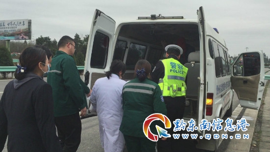 2月19日下午3點左右,黔東南州交警支隊高速一大隊值班室接到求助電話稱:“一輛從從江護送病人去凱里的救護車壞在了余安高速丹寨收費站附近。”